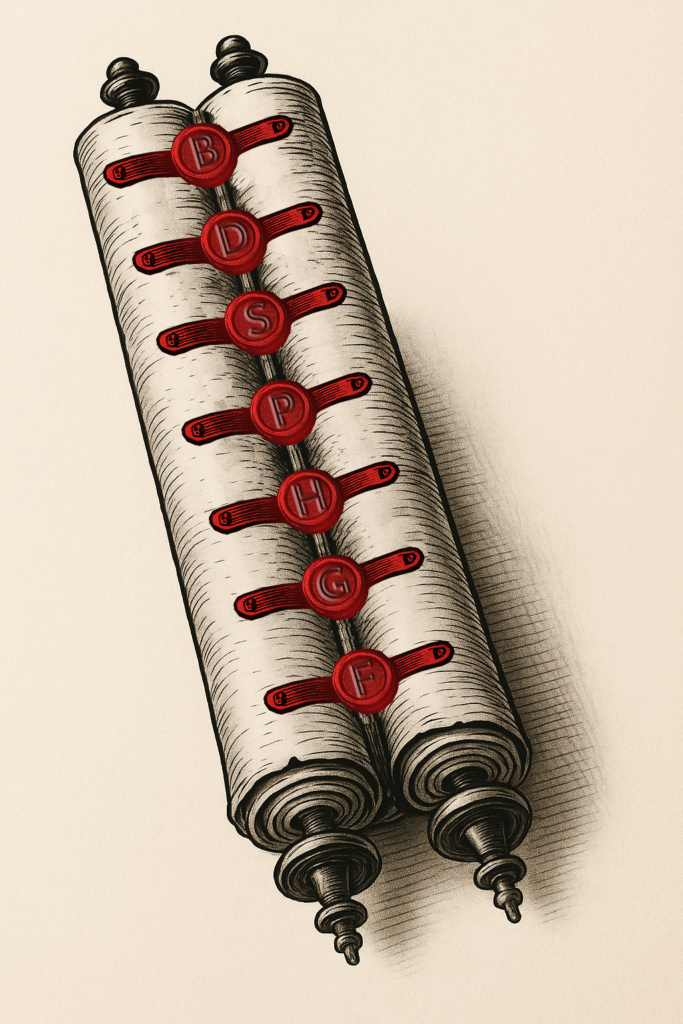 O Livro dos Sete Selos, mencionado no Apocalipse, é apresentado como um volume sagrado que somente o Cordeiro pode abrir. Cada selo representa uma etapa de desvelamento da Verdade. No Grau 17, o livro é mais do que um objeto simbólico – ele é o roteiro da própria evolução espiritual do Iniciado. Romper cada selo é uma metáfora para as sucessivas purificações e elevações da consciência, onde antigas concepções são abandonadas e novos níveis de sabedoria são alcançados.