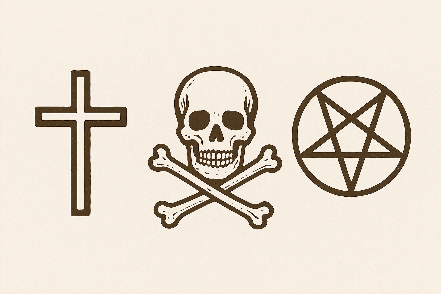 Ao longo da história, o ser humano dividiu o mundo entre forças construtivas e destrutivas, e dessa divisão nasceram inúmeras representações simbólicas do bem e do mal. A cruz, na tradição cristã, é a expressão suprema da redenção e do amor divino. Já outros símbolos acabaram associados ao mal, como o número 666, o pentagrama invertido ou figuras demonizadas ao longo dos séculos. Entretanto, muitas dessas associações são recentes e não refletem o significado original. Um exemplo claro é o da caveira sobre os ossos cruzados. Embora hoje apareça em embalagens de veneno e em placas de perigo, sua origem simbólica é totalmente diferente. Em ordens iniciáticas, tradições esotéricas, na rosacruz e na maçonaria, a caveira representa a reflexão profunda sobre a mortalidade humana. É o lembrete de que a vida é breve, que o corpo é transitório e que a alma precisa ser edificada com integridade, pois é a única obra que subsiste ao tempo.
