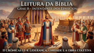 A leitura de II Crônicas 1:1–4 no Grau 8 destaca a liderança de Salomão, que une o povo e honra a tradição para construir a obra sagrada. O Intendente dos Edifícios aprende que nenhum templo se ergue sem ética, fraternidade e serviço ao Grande Arquiteto.
